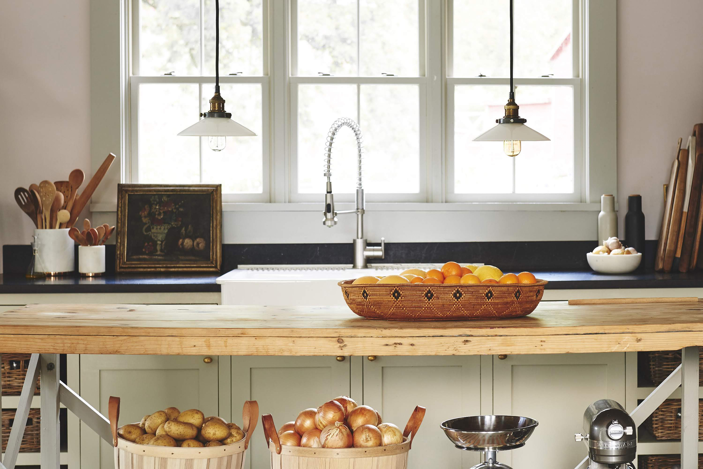 A neon orange sink basin isn’t off the table when the rest of the room is a blank canvas, like in Linda and John Meyers’ Portland, Maine, kitchen. The splash of color is used as punctuation here, and a single tangerine knob is the tiny nod that ties it all together.
