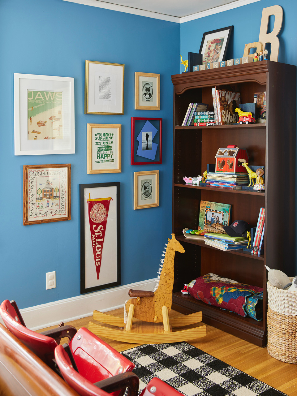 Rockford (Rocky) Renkoski may only be 3 1/2 years old, but he’s already destined to end up in the Hall of Fame—and not just because he has the coolest name ever. In his Des Moines bedroom, photos of baseball greats hang on the walls. And, of course, it’s hard to miss the authentic chairs from the original Busch Stadium in Saint Louis positioned at the foot of his bed. “There’s a low-key sports theme happening without it hitting you over the head,” says his mom, gallery owner Liz Lidgett, who sourced the seats for around $1,000 at an auction when the building went under renovation. “They’ve lived outside on the deck and in a guest bedroom,” she continues. “They’re whimsical and fun but have this grown-up element to them.”