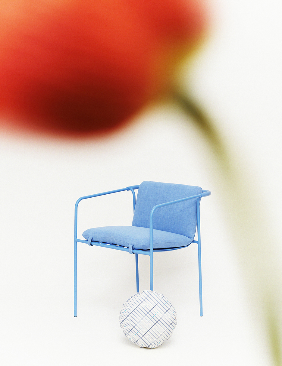 This powder-coated chair already comes with a backrest, but tossing on a coin-shaped accent brings out the frame’s curves (and comfort level).