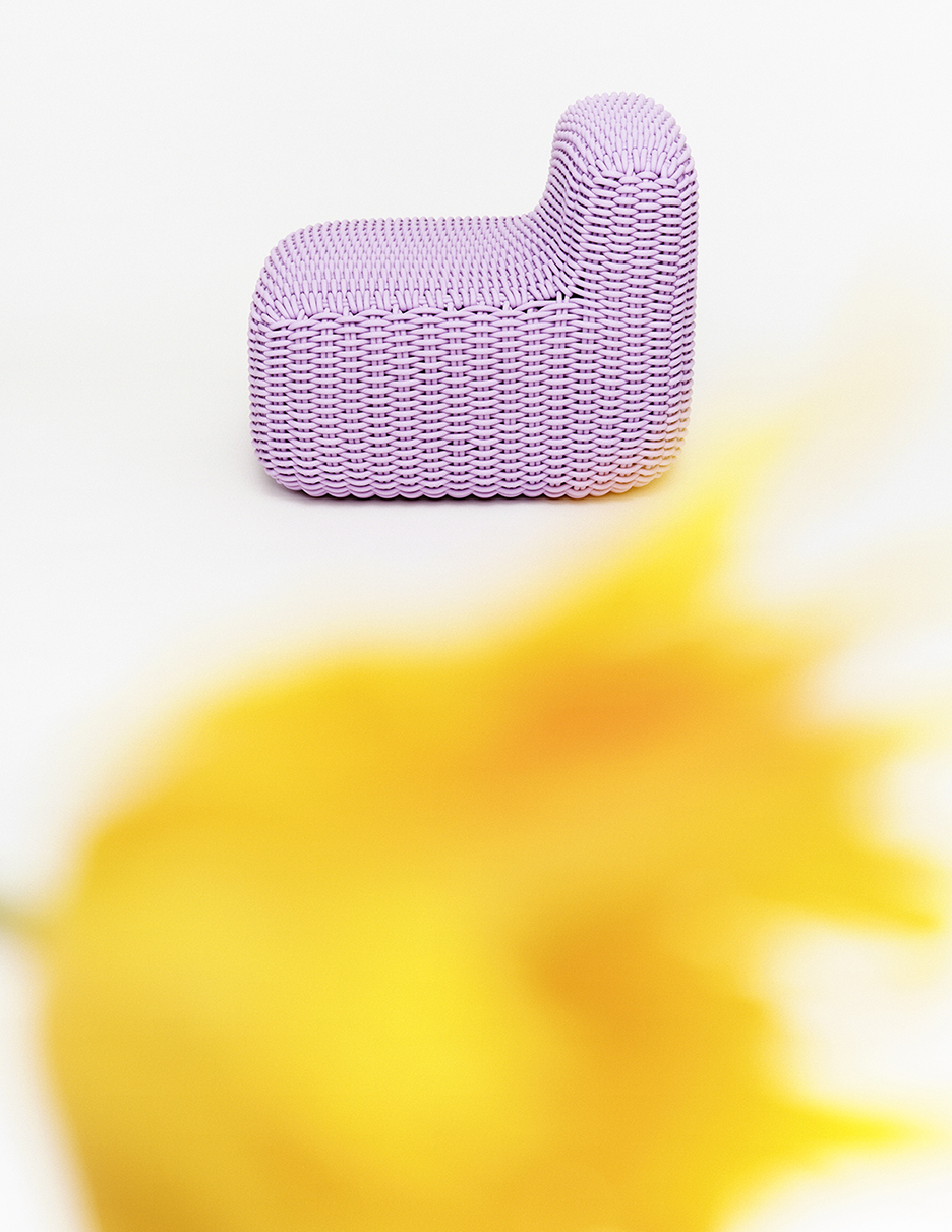 What looks like sherbet-toned wicker is actually plush woven silicone layered over marine-grade foam, the perfect combo of sturdy and supportive, no cushion necessary.