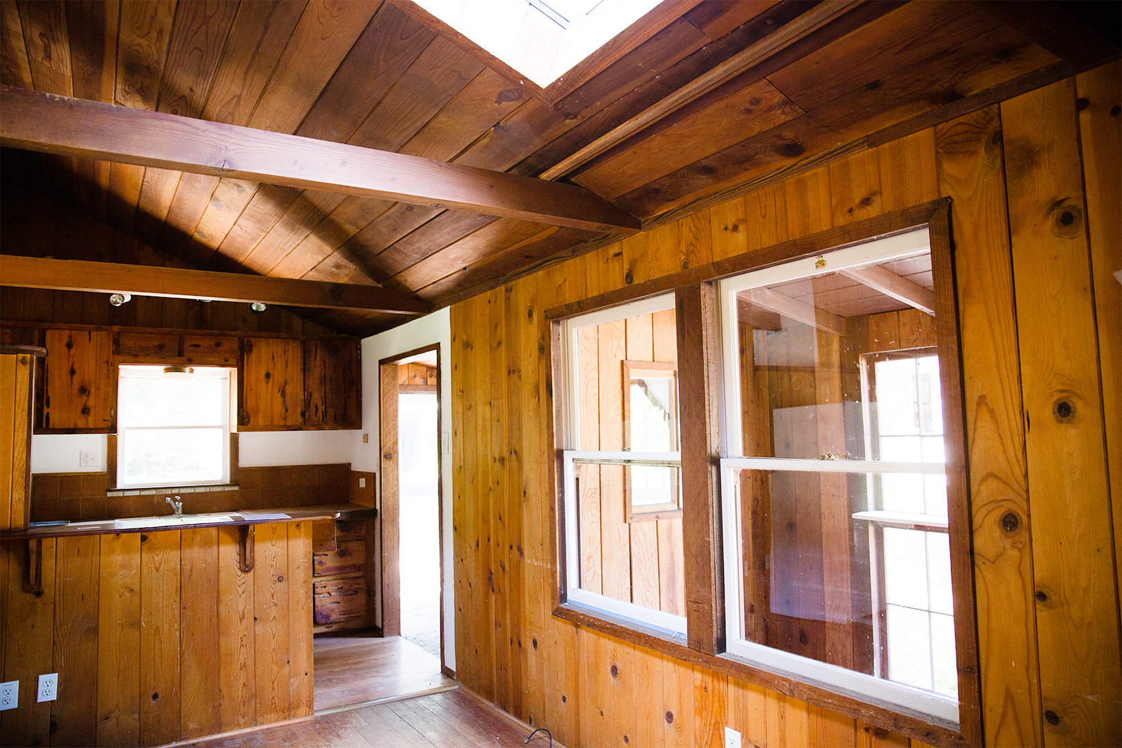 They got to work on the structural issues of the fishing cabin, or what the owners dubbed the “little house,” immediately—it needed an entirely new foundation. Sounds like no easy feat, but because of its single story and open-layout construction, Danny was able to jack it up and pour the concrete directly underneath the existing structure (almost exactly as you would replace a flat tire).