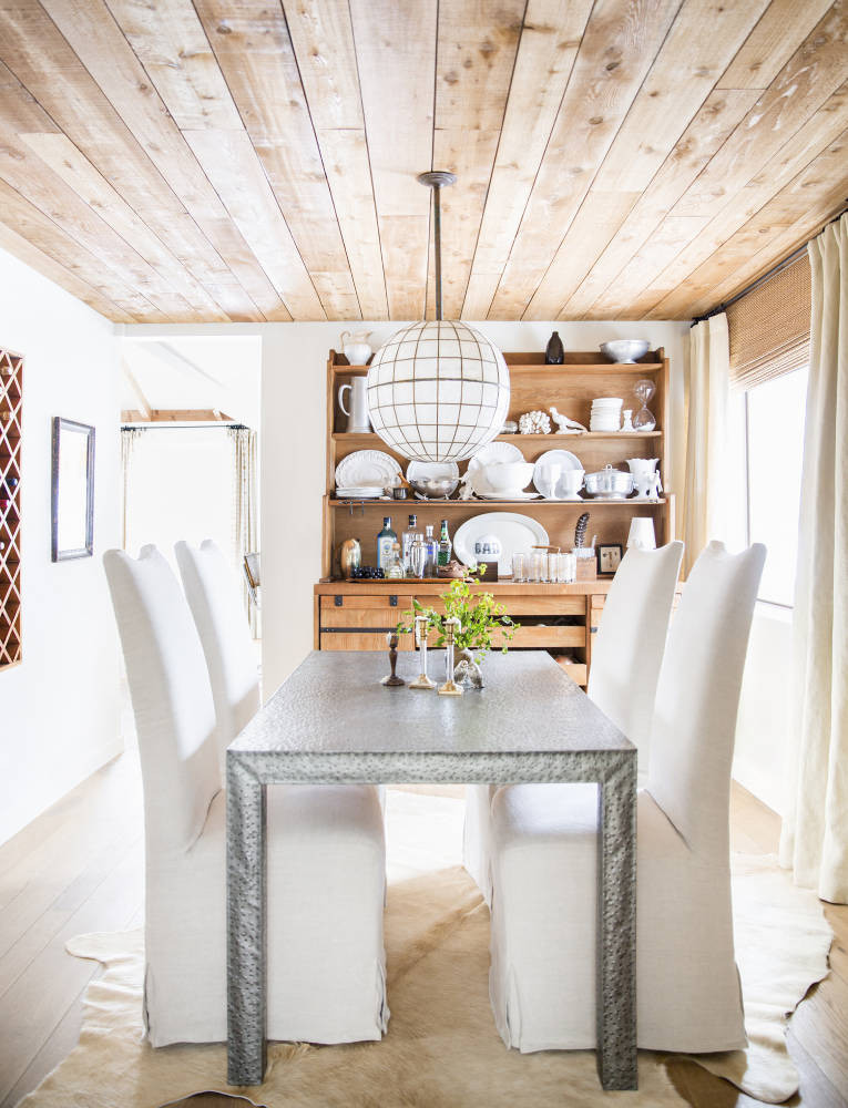 In the kitchen, Lauren mixed metals—brass, iron, chrome, galvanized steel, and stainless steel—to achieve a “collected and casual look.