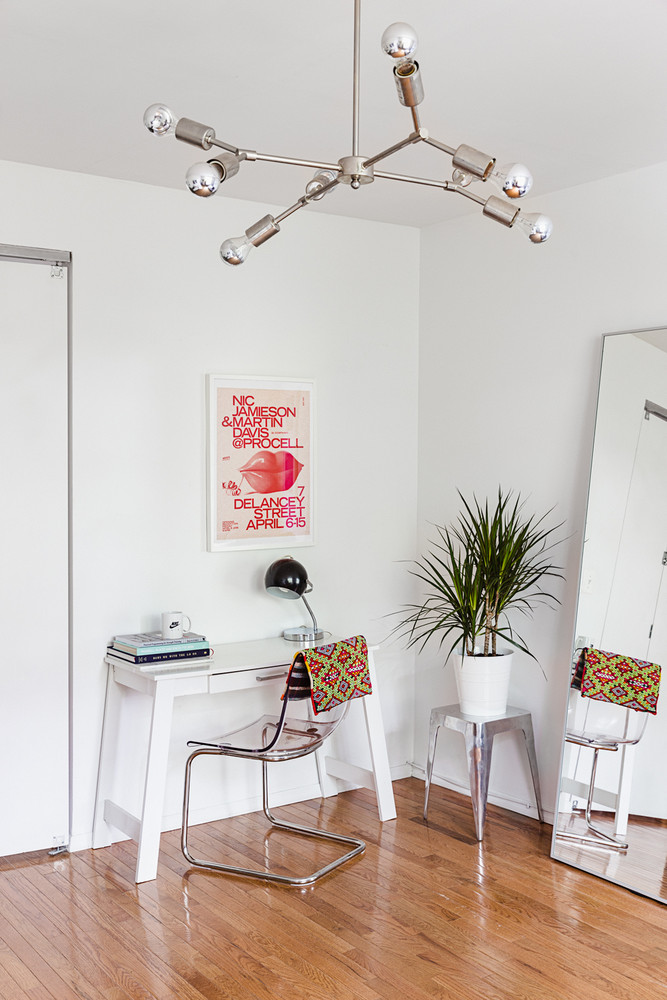 Just as her work is about creating a connection, so is Hughes’ home. It may be minimalist, but the thought that went into decorating the 1,000-square-foot space is inspiring. Every piece has meaning and was carefully selected to be a perfect representation of her style, which Hughes describes as “a mix between Scandinavian design and Bauhaus.”