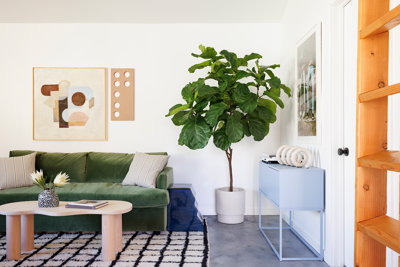 For starters, neither Colleen, lead content design at YouTube Music, nor Pip, XYZ Films’s senior vice president of sales and acquisitions, need a covered spot to park their car (Colleen swears they always find a spot on the street). And unlike the former family’s father, who fancied himself something of a mechanic, they immediately envisioned transforming the 440-square-foot space into a guesthouse. “It’s bigger than any New York apartment I ever had,” Colleen says, laughing. After a decade of living in Brooklyn, she was guilt-stricken that the garage basically served as a glorified storage unit, especially given it was roomy enough to host friends and extended family, most of whom hail from the East Coast. “I was like: Oh, my God, fill it up! [It’s] so wasteful. People could be living here,” she says.