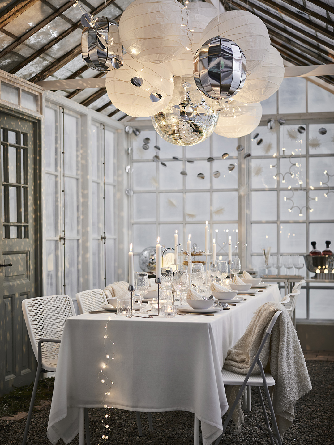 IKEA has taken its love of flat-pack furniture and decor to a new level. Today, the Swedish furniture brand shared its holiday-themed Fröjda collection with the masses. Inspired by “the bubbly spirit of New Year’s Eve and the crisp Swedish winters,” this new curation includes a bunch of things perfect for an end-of-the-year soiree. Among the many gems designers Lisa Hilland and Mikael Axelsson dreamed up is a disco ball that can be folded up after your party is over.