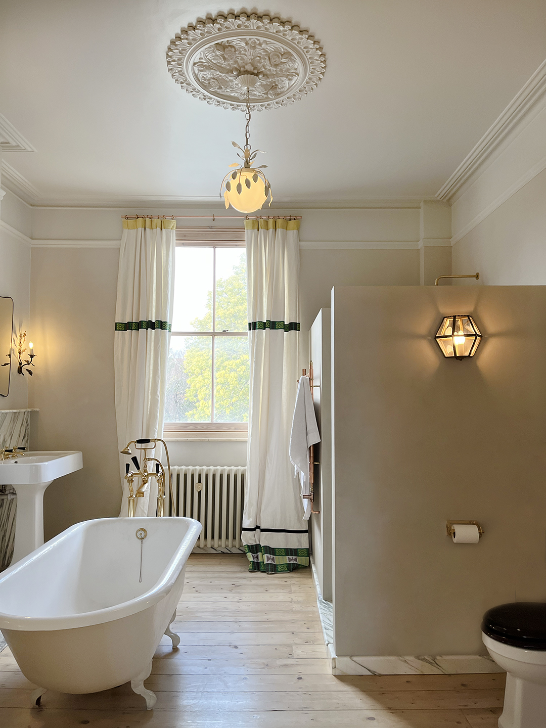 Wanting to avoid the clinical design trap that so many new bathroom renovations fall into, Kilroy focused on adding pieces with age and character, like an enormous claw-foot cast-iron tub, an eBay score. The designer refurbished the piece herself with Zinsser BIN primer and, once that was dry, two coats of satin paint. Connecting the fixture to a water source turned out to be the trickier part. The taps that had come with the tub were leaky and beyond repair. Kilroy found herself buying a floor-standing filler that she hadn’t initially budgeted for. No regrets: “We’re so happy we have our own bathtub and have taken more baths in the past few months than in the past few years,” she shares.