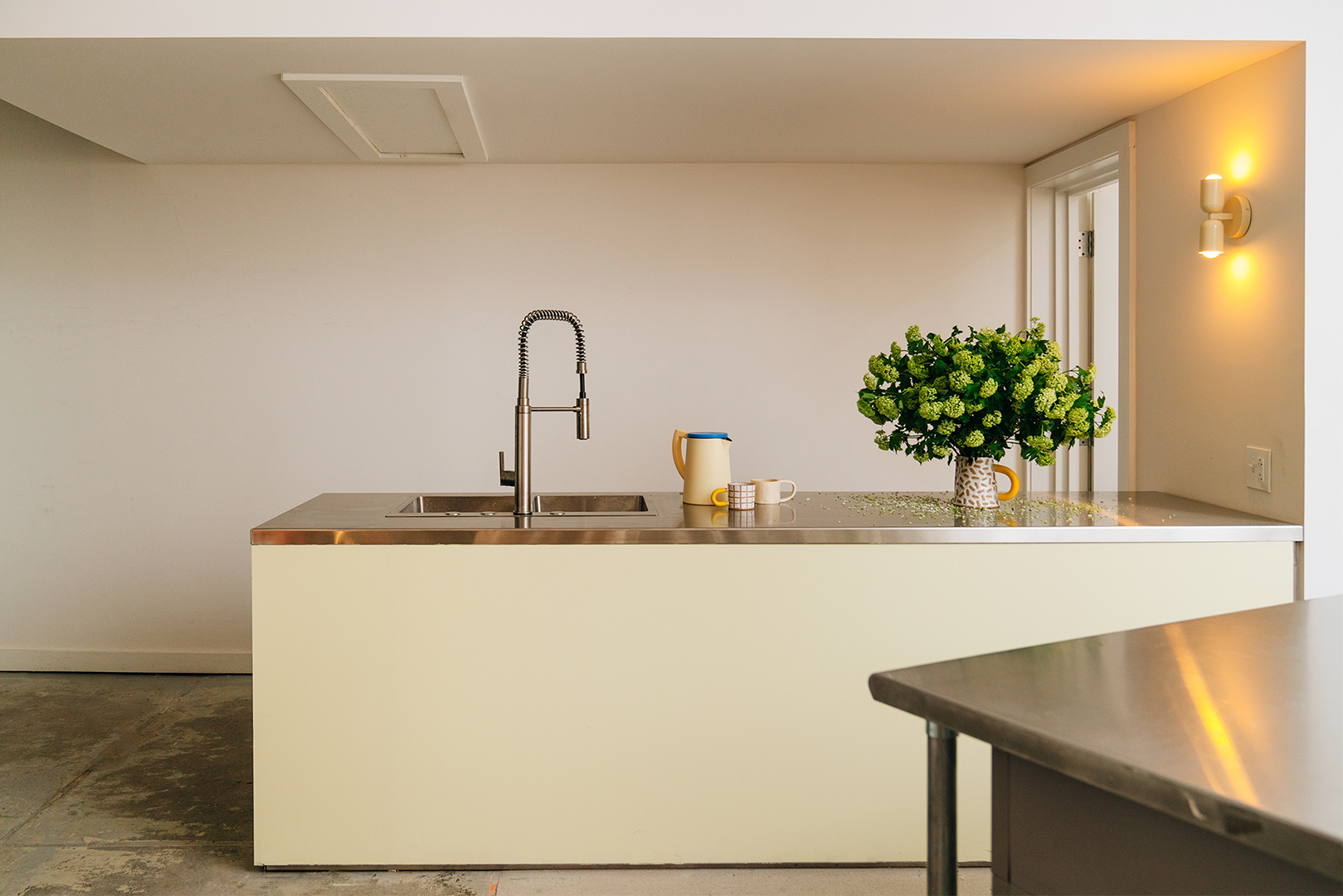 How I found it: My husband worked upstairs, and when I got pregnant and my old studio space was raising the rent, he made it his goal to find a new place for me that was walking distance from home. He wrote the landlord about the downstairs space and was like, “Hey, would you ever add windows?” But that conversation never got started because the landlord said they’d like to sell the building! So we ended up buying it—and then added the windows. The studio is designed by John Adley Morgan Doyle of Pistachio Studio. Freelancers can rent desks upstairs, and I’ve always worked alongside two other artists; Blakely Made’s space is next to mine, and then behind us is Lulie Wallace’s team.