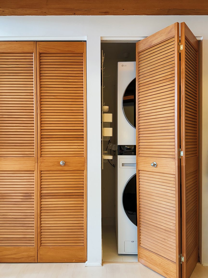 An IKEA Pegboard Was the Ticket to Storing Cleaning Supplies in This Narrow Laundry Closet