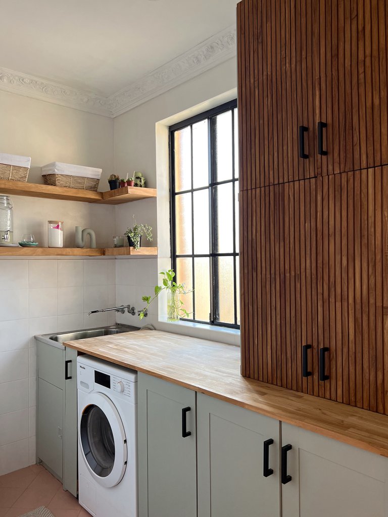 Turning an Old Headboard Into Shelves in This Laundry Room Was My Grandma’s Genius Idea