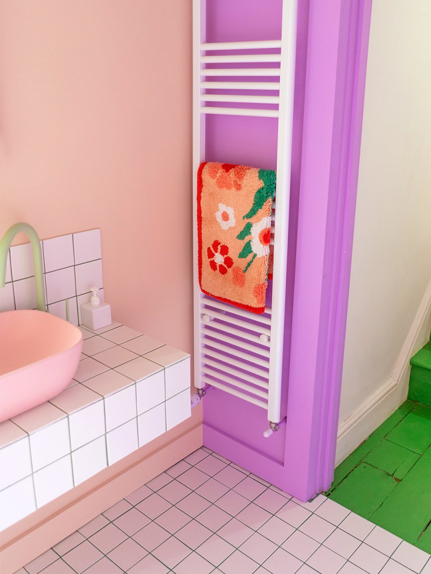 In This Pastel London Bathroom, the Green Grout Matches the Faucet