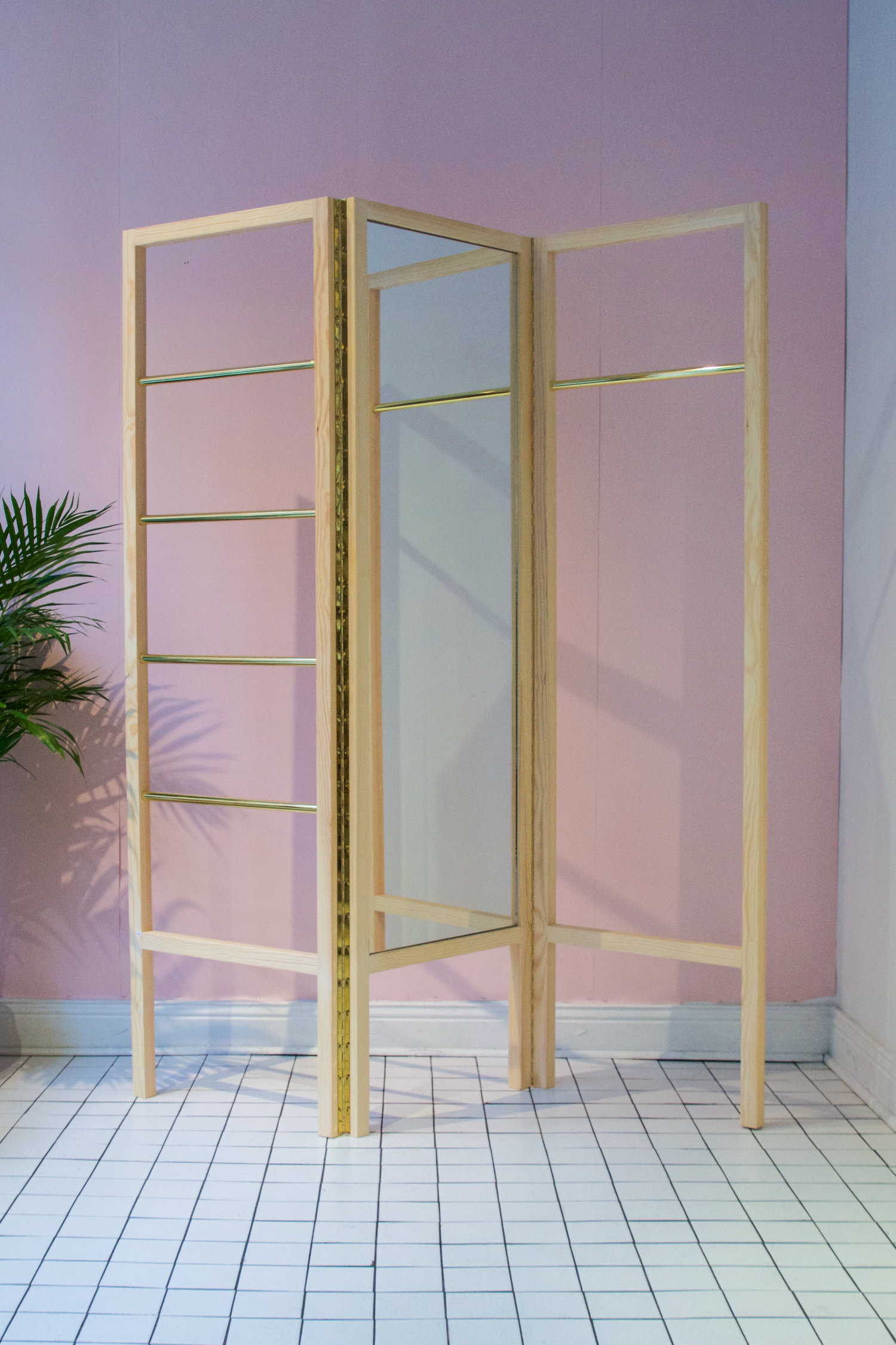 Down the hall, subtle explosions of pink add character and depth to the unit’s third and final bedroom, where a large print of Joshua Tree, charmingly superimposed with a rainbow, by Ludwig Favre picks up on the dwelling’s seemingly magical aura.