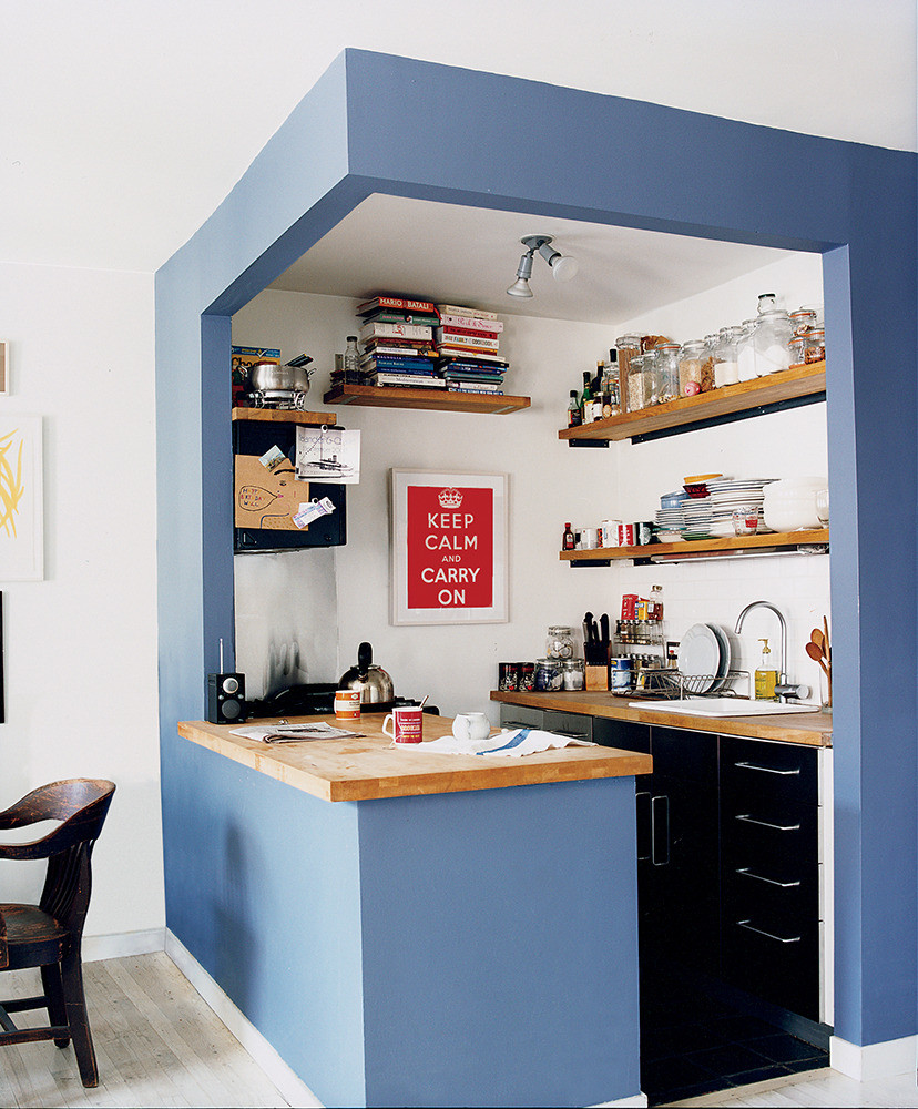 The kitchen isn’t only reserved for dishware. Add a bookshelf to store your cookbooks, mom’s secret recipes, and tchotchkes for that added dose of charm.