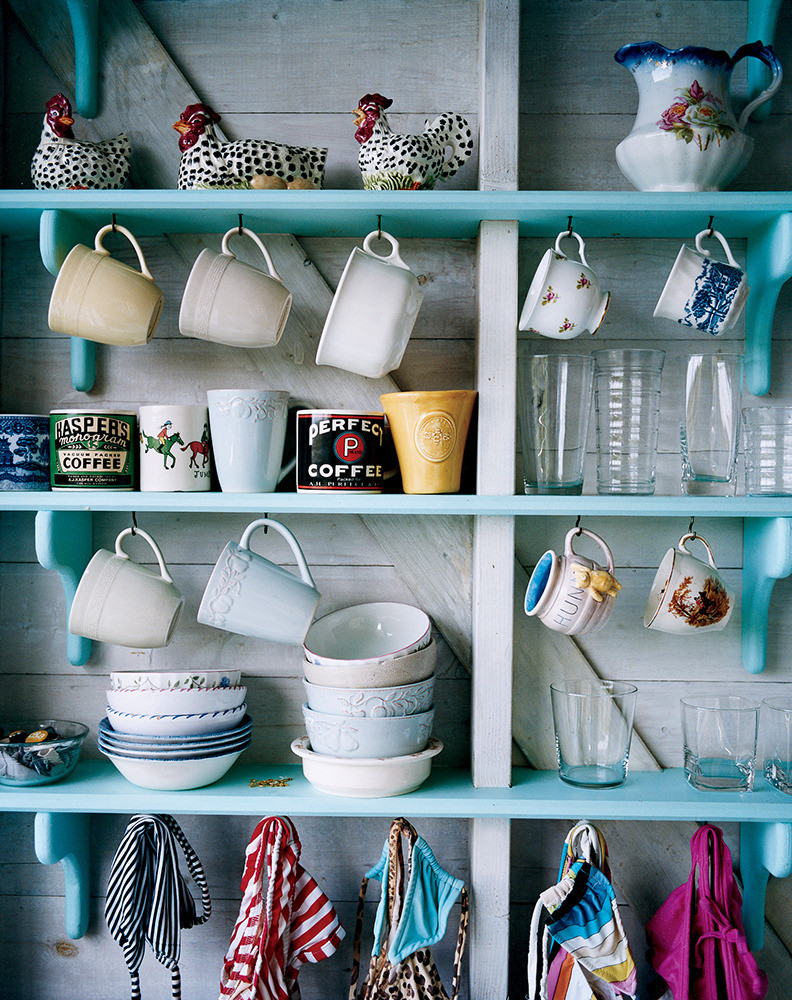 A storage wall like this makes it easy to keep your kitchen clean and tidy. (Oh, and Julia Child would be so proud.) Every tool has its place, thanks to handy painted silhouettes. Hang your pots and pans on the coordinating spaces and voila! It’s artwork.