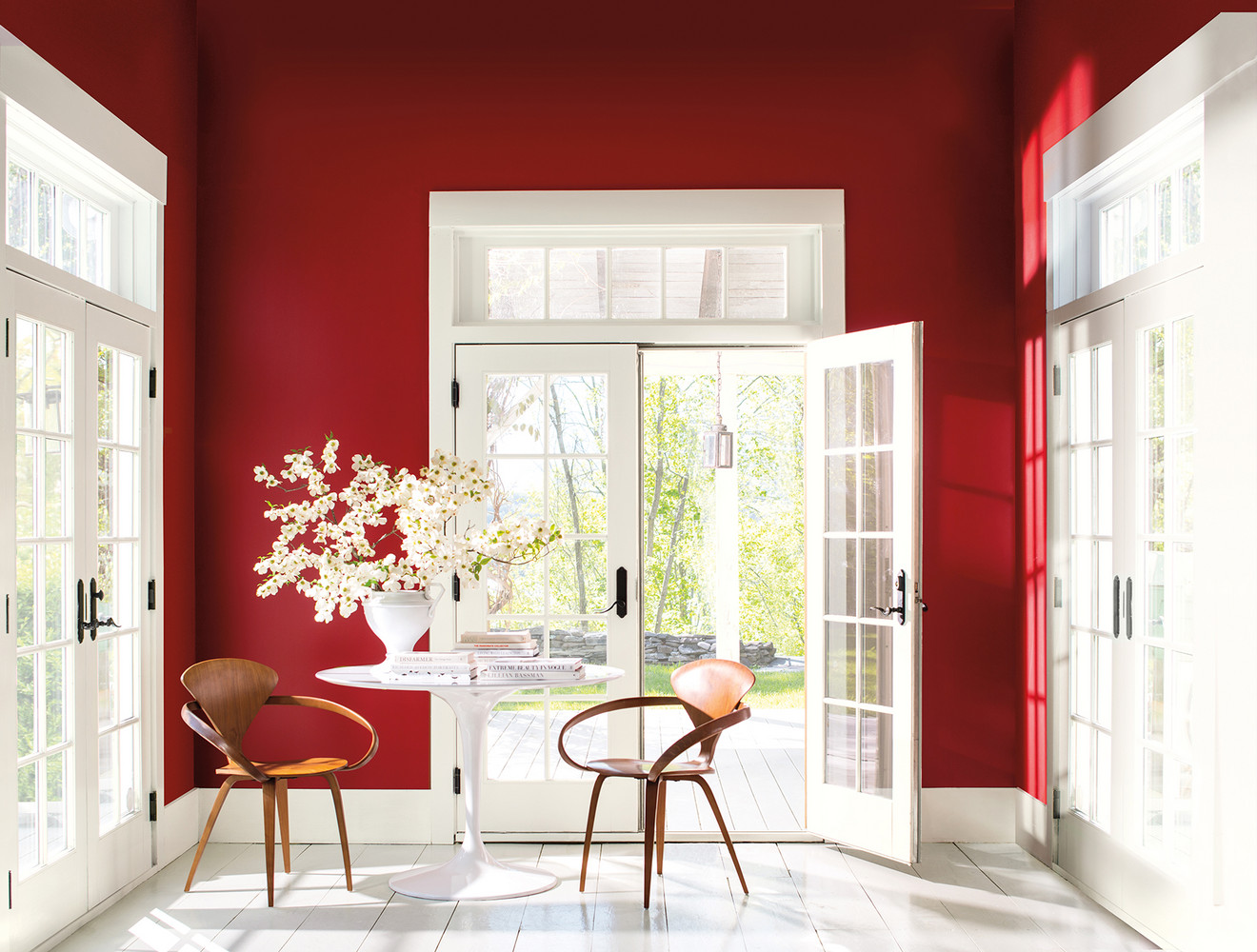 For those looking for an equally bold shade on the warmer end of the color spectrum, Benjamin Moore’s pick is for you. “Caliente AF-290” is a deep, dramatic red that makes a statement no matter how you use it. Or, as Benjamin Moore Director of Strategic Design Intelligence Ellen O’Neill put it, “The spirited personality of red turns heads signaling surprise and adventure.”