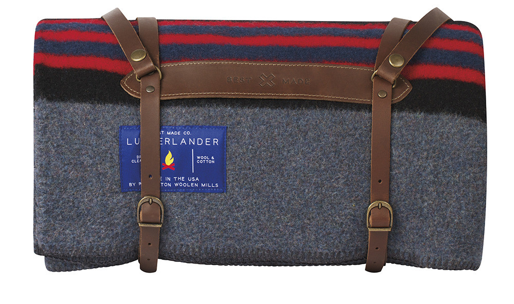 Sling it: with its leather harness, this cozy blanket transports easily.