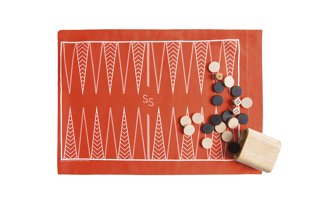 A roll-up game board for candlelit rounds of backgammon.