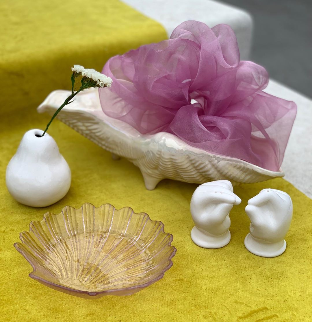 “I found myself gravitating toward frosted glass‚ like pale pink vases, little dishes, or lamps. It’s cool being able to mix in some authentic Art Deco frosted glass from the ’20s and ’30s. You can go to a thrift store and find it. Lately we’ve been so ceramic heavy, so it’s fun to play with a new material.”