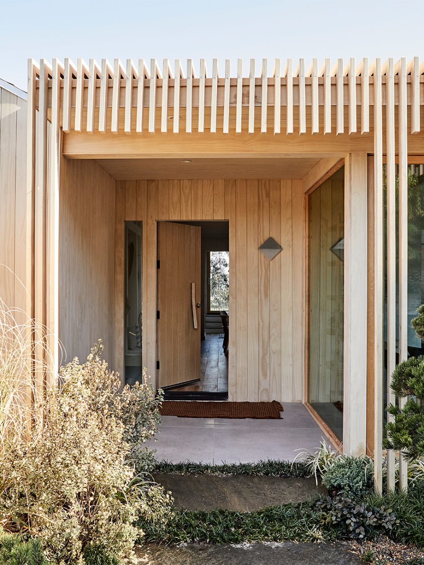 You probably haven’t ever spotted this material before, but Wijaya suspects you’ll be seeing it a lot more in the future. The softwood lumber is treated with acetic anhydride, which—unlike an untreated wood such as cedar, which can be susceptible to rotting—helps it last 70-plus years. And you can feel good about the fact that it’s eco-friendly (it doesn’t contain any copper or biocides that can leach into the environment over time). It’s blond coloring lends a very zen Japanese minimalism–meets–Scandinavian hygge feel, which is exactly what Wijaya was going for on this project.