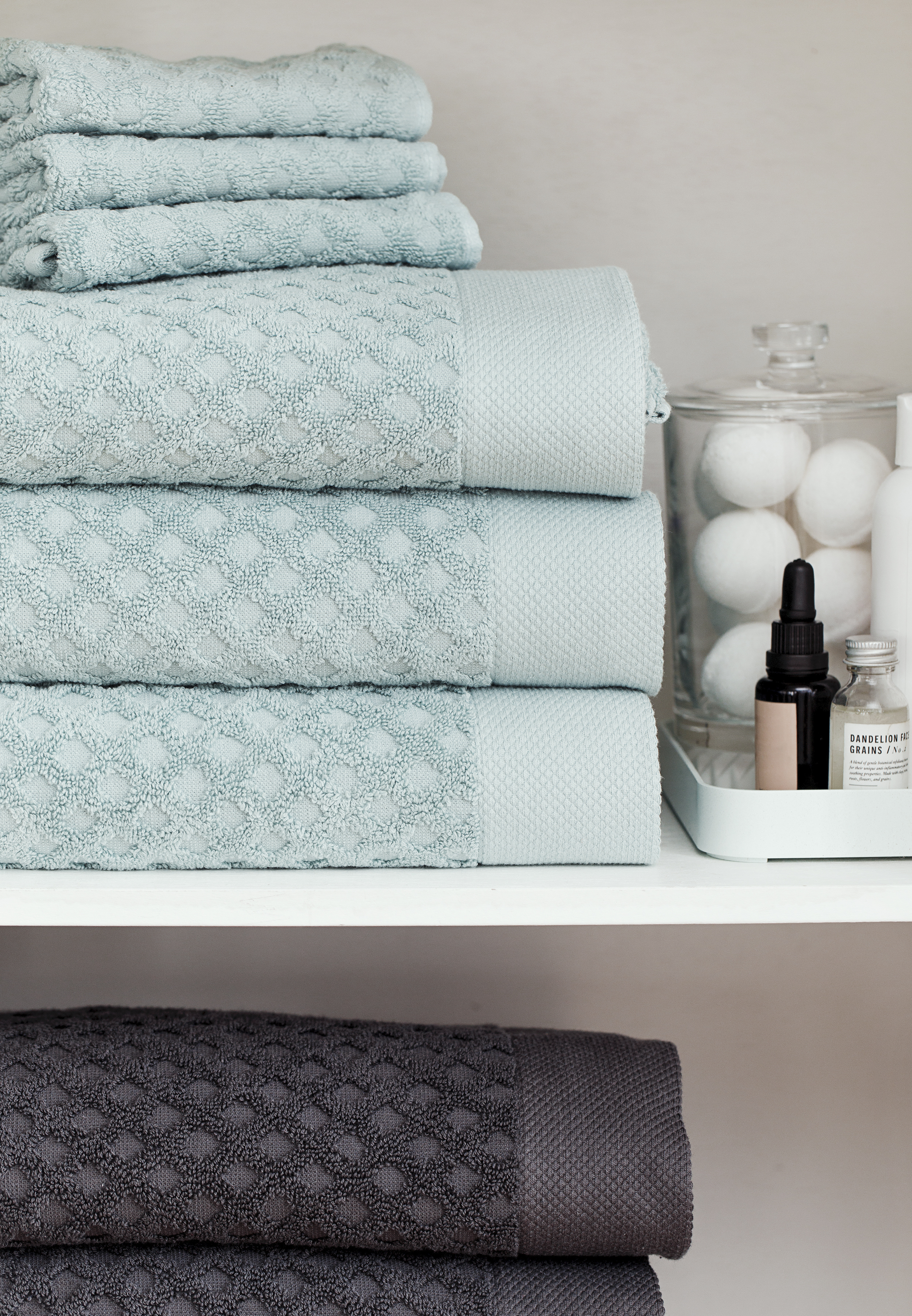Cue the soft goods—these are the little touches that can speak volumes. Mix and match colorful bath and hand towels, then anchor them with a stripey shower curtain, cool prints, drapes (if you have a window), and a patterned shower curtain. Prop a vibrant living plant in a basket and consider your personal oasis found.