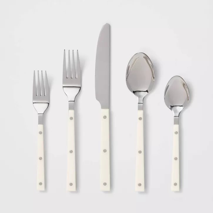 For the less urgent but equally important items ($7 dipped-wax taper candles and teakwood salad spoons), we’ve got you covered. Target’s French bistro–style 20-piece flatware set is not one to snooze on at just $40.