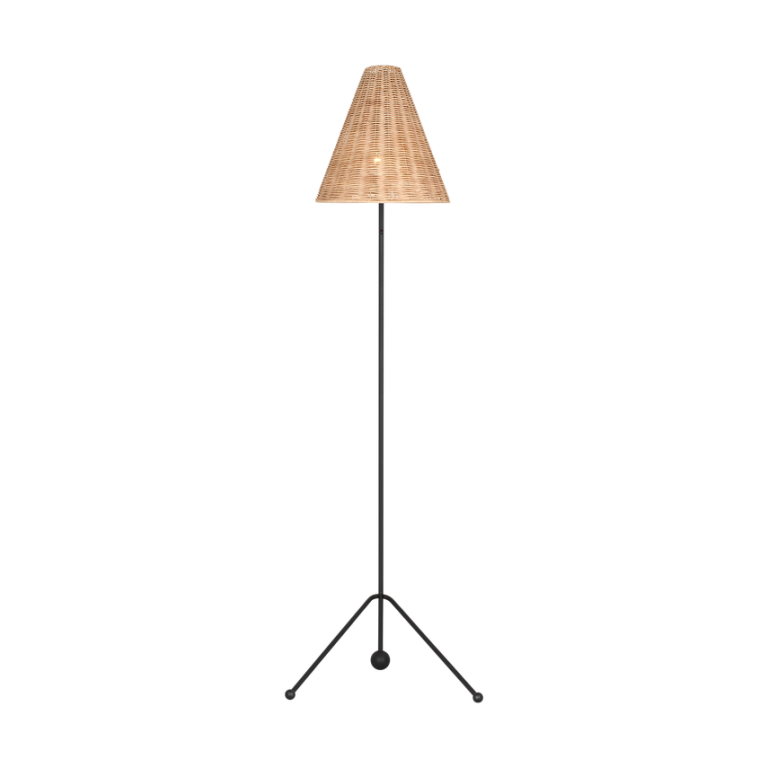 Wicker and raffia both lend texture and materiality to a space, whether that’s in a piece of furniture or, as is the case here, a lampshade or base.