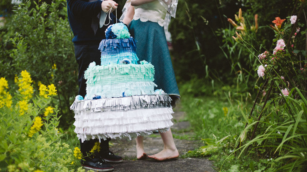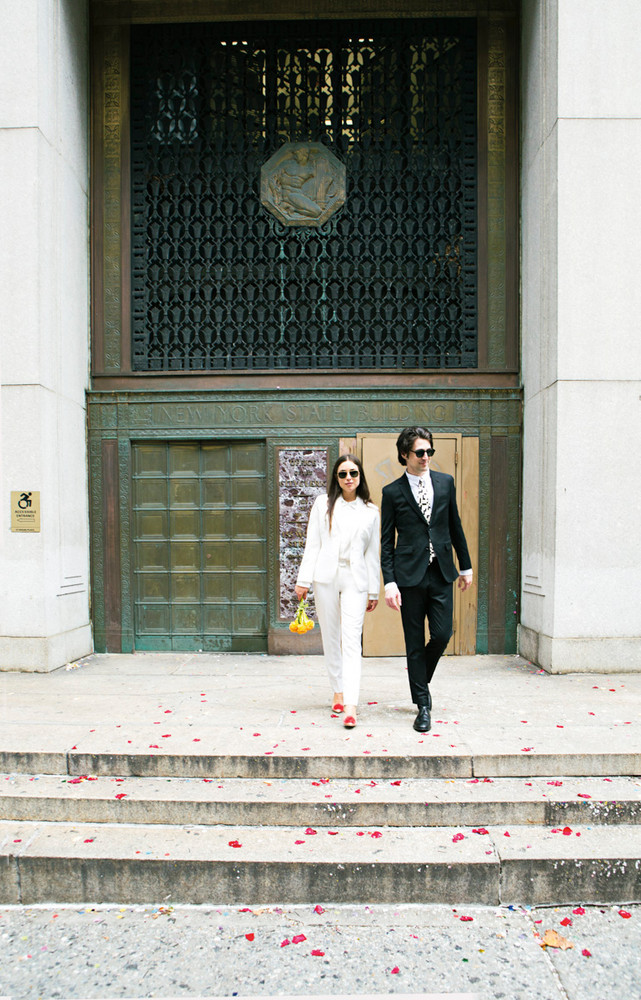 If fluffy dresses, flowers, and fancy food don’t speak your language, consider taking your vows down to City Hall. Following their 80-something-second ceremony, NYC-based writer Molly Young and her now-husband Teddy Blanks opted for photos at a nearby party store and feasted on burgers and fries at a local diner before hosting a next-day soiree at their home with friends.
