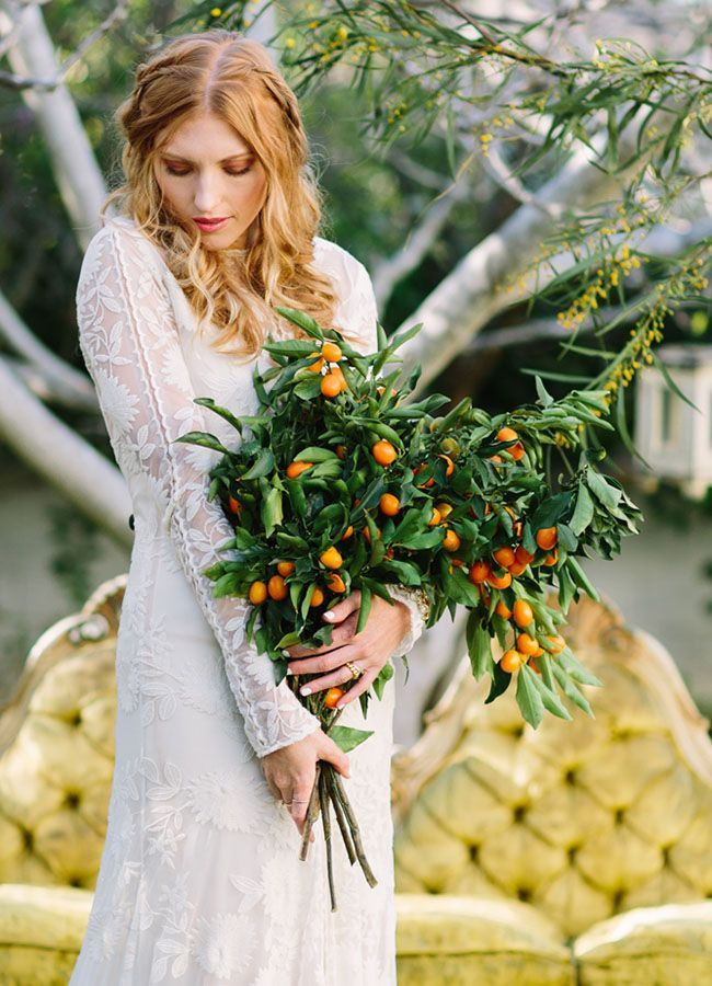 Skip the florals in lieu of a vibrant cluster of fresh greens and kumquats.