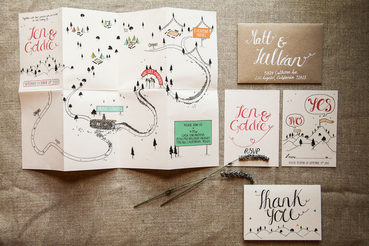 Wedding invites often come standard, despite the myriad options available for customization. Then there’s this charming hand-drawn invite (that doubles as a map!), which takes the cake for originality. Get the scoop here.