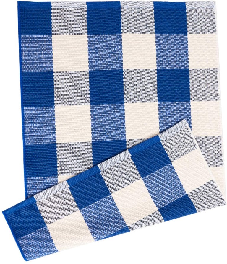 If black and white isn’t your thing, there are many more gingham options to choose from. For a burst of blue, Amazon also offers a handwoven cotton pick, or if you’re looking for something to blend in with your surroundings, a natural-hued rug that will bring a rattan vibe to your floor. Wayfair’s candy apple–green style will look even better against the natural greenery of your yard, and if you’re in the mood to splurge, Serena & Lily’s pastel choice will make every day feel like a picnic.