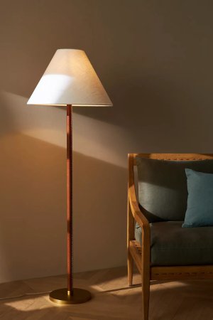Leather isn’t just for dining-chair cushions or bachelor-pad sofas—it can be for lighting, too. Lewis added an edge to this traditional floor lamp silhouette by wrapping the base in the material, which will patina beautifully over time.