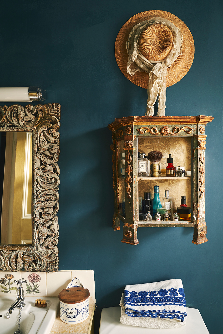 In the bathroom, it’s another story. Specifically, one that recalls warm days in Normandy, France, where she and her family have a farmhouse. “I’m hoping to get back there this summer,” she says. In the meantime, you’ll find her at home—if not in the garden surrounded by her blossoming geraniums, then inside with a paintbrush in hand.