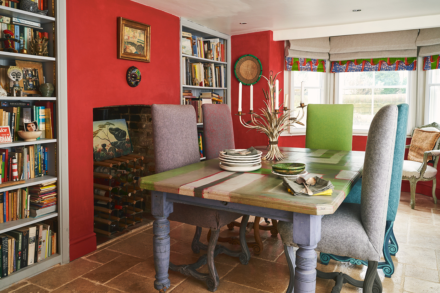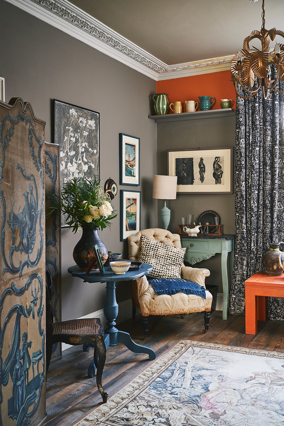 Annie Sloan can get away with a lot of color, and not just because she’s an expert in the area (she invented her revolutionary Chalk Paint back in 1990 and has authored and published more than 20 books on the matter). Her Oxfordshire, England, home welcomes it. “Sometimes you start with a palette and find it actually doesn’t work, and that’s been the case for every other house I’ve worked on or lived in,” she says. But the 1817 Victorian townhouse she and her husband, David, have called home since the early 2000s is an exception. Its southwest orientation prevents shadows from looming on the walls, so tones as punchy as a cherry red or as moody as a charcoal black look natural all day long. “It just works,” she says.