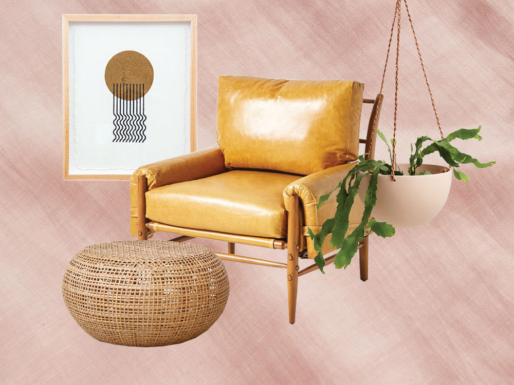 With a blush hanging planter and mustard block print, this vignette has all the makings of the perfect Southwest-inspired reading nook. Prop your feet up on the rattan ottoman and settle in with that new book you’ve been itching to crack open.