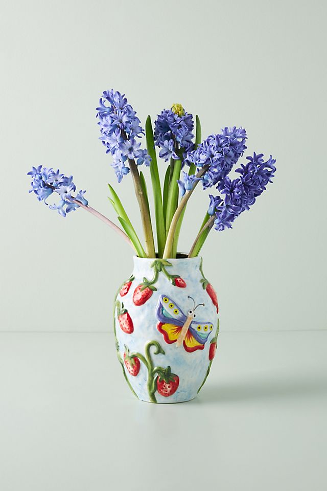 Even bodega flowers will look charming in this gilded glass carafe. We recommend going with something bright and simple, like daisies.