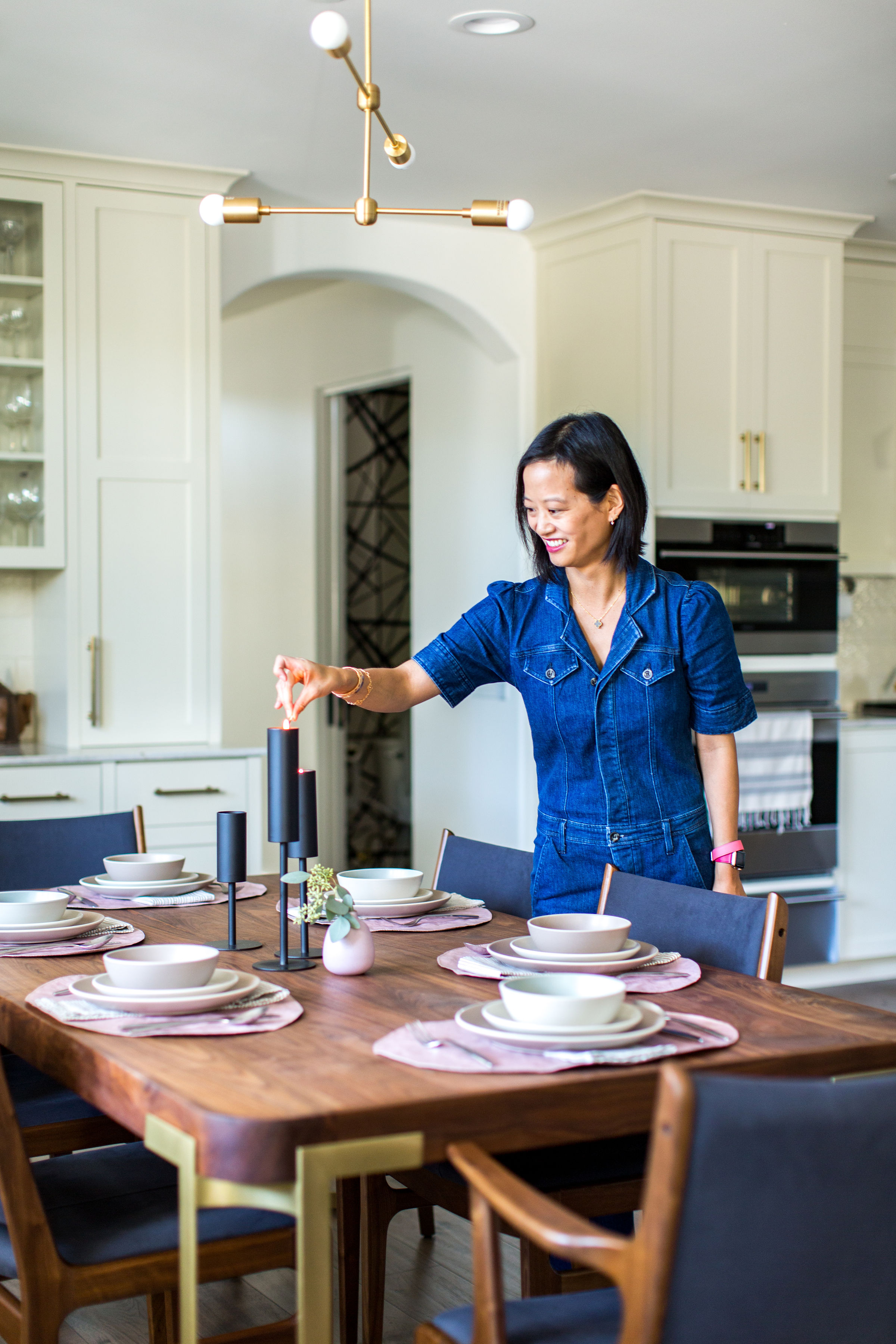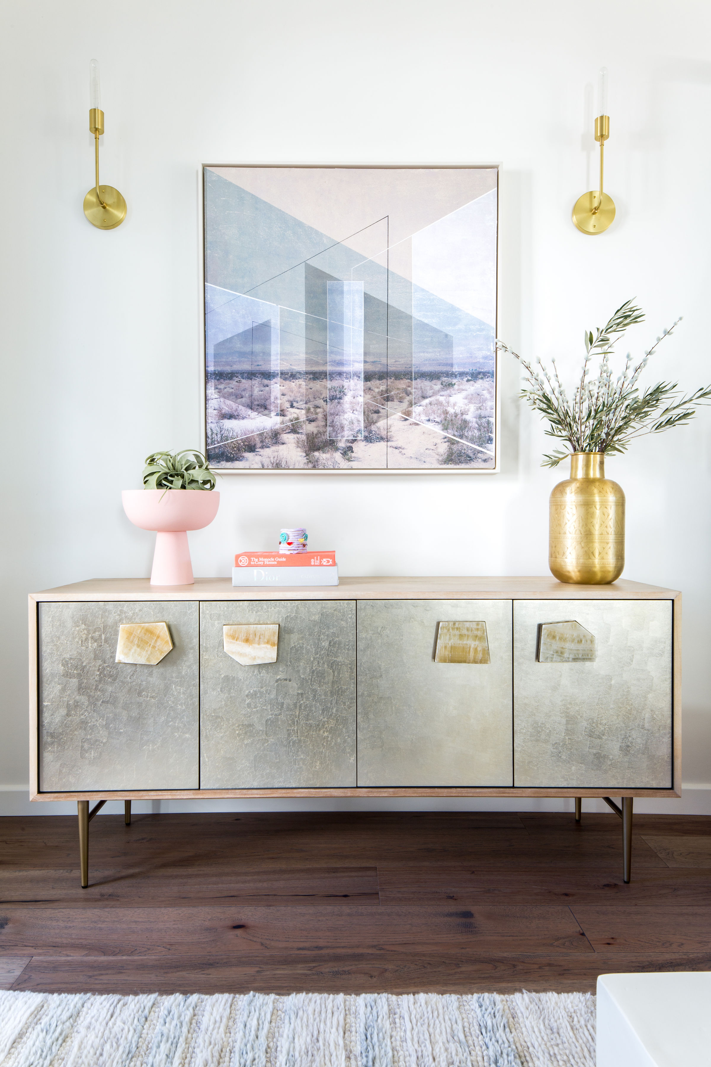 The designer kept the drama going with glamorous dining chairs and an extravagant brass chandelier. Her secret to pulling off luxe? Commit to fewer moments.