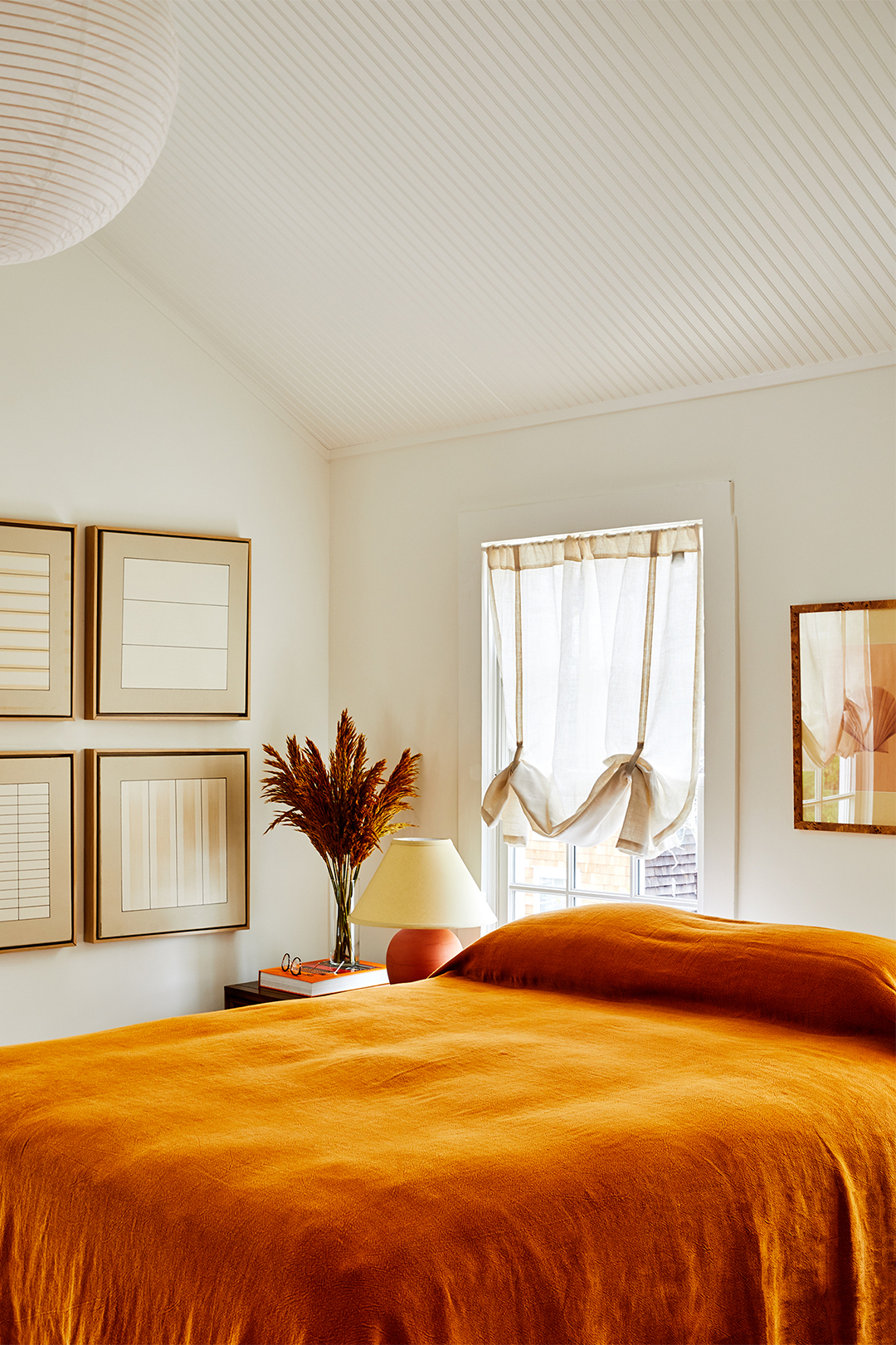 “A lot of sleep was lost over the wall treatment,” says Feirstein of the wainscoting, shiplap, and board-and-batten details. It runs halfway up the walls in some rooms. In others, it’s applied overhead. In the cavernous main bedroom, though, it stretches floor to ceiling, disguising awkward rooflines and bringing a sense of history to the new addition. A built-in bench, also paneled, is a cozy spot for breakfast—and cleverly hides ductwork. With all of these updates, Feirstein was able to almost double the property value in just two years.