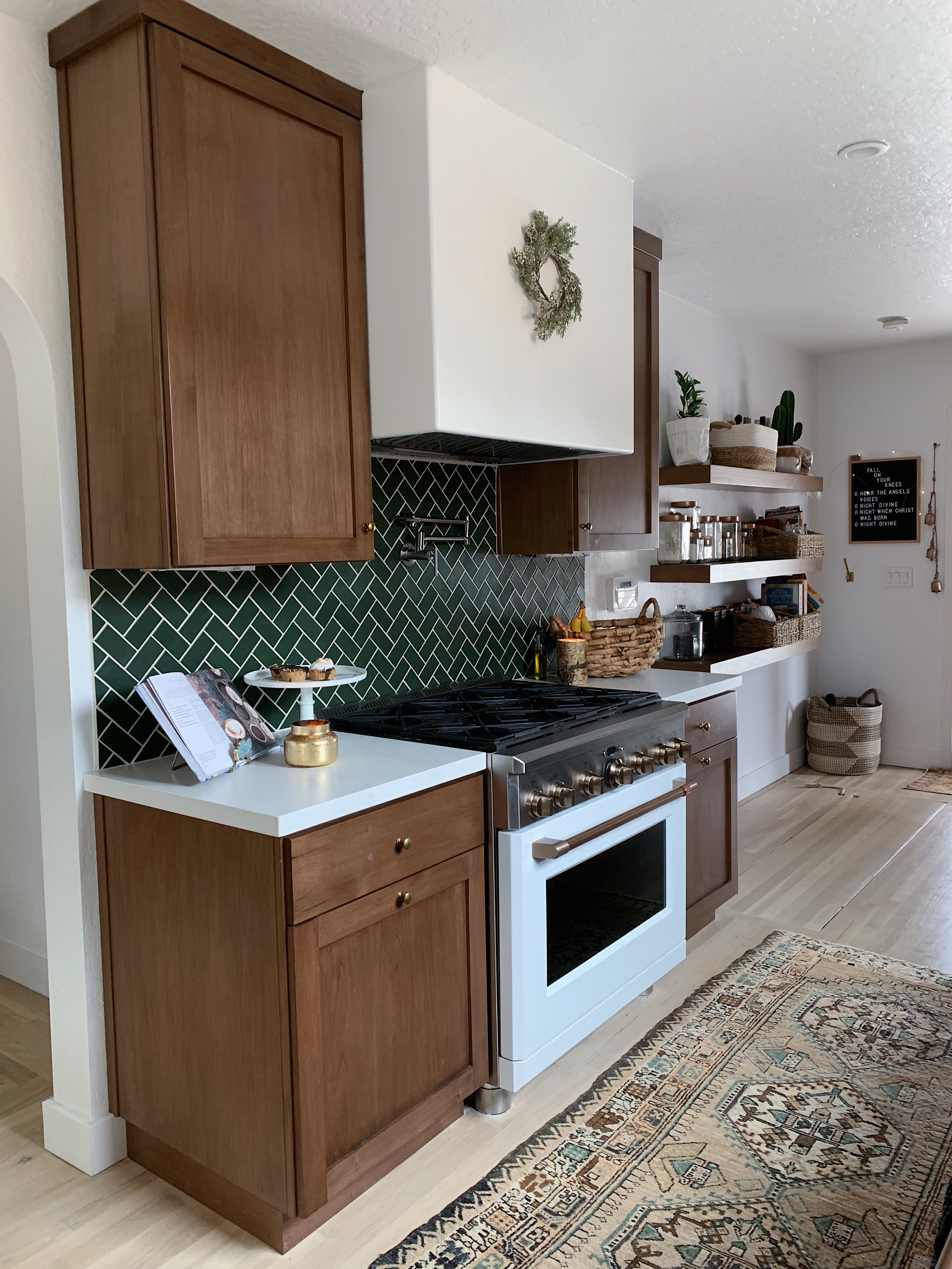 Inside our kitchen nook, we have an arched cutout where we keep our mail. That was the one thing we left on the kitchen side that’s original because it’s unique and special.