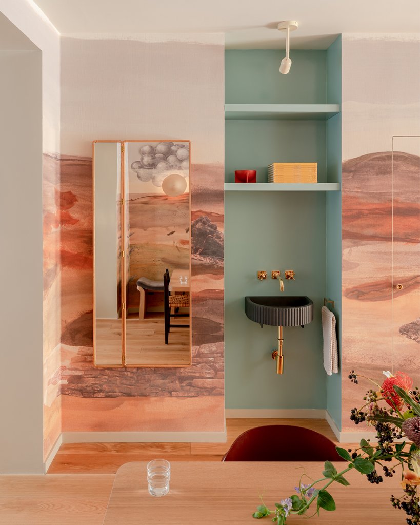 We also want to show design opportunities. We put a giant Faye Toogood for Calico mural in the living room that clients would see and say, “Oh, wow, that’s so cool, but I don’t know if I can have that kind of thing.” But when you see it installed in our store with pretty normal furniture, it seems really doable.