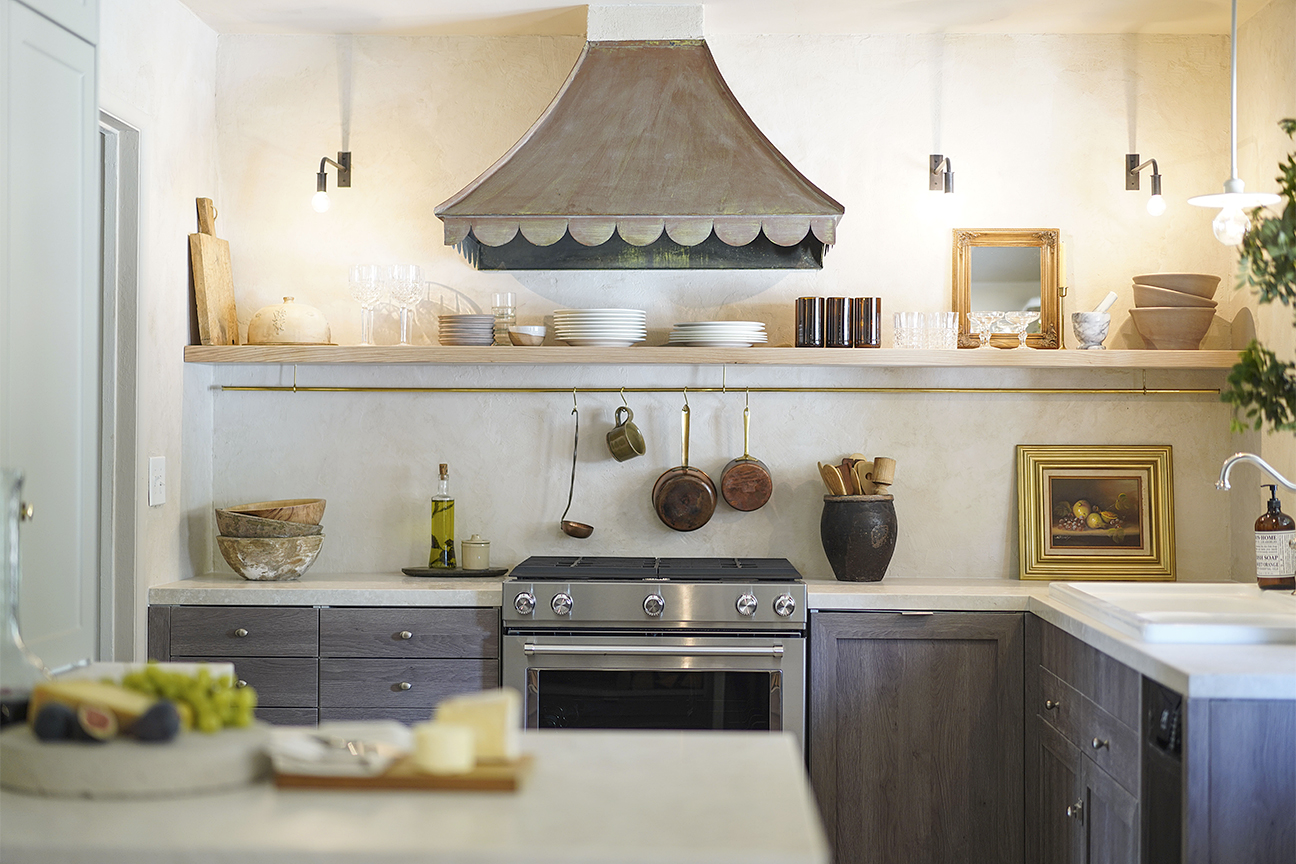 A kitchen you’re creating to sell isn’t the place to go all out on bright colors and eclectic curtains—you have to appeal to the masses. Knowing that most people—in Riverside and beyond—are drawn to neutral, timeless palettes, Reifer kept the largest surfaces minimal, choosing concrete plaster walls to add texture without overpowering the room. “We really wanted to create a tension between modern and an old-world country feel,” she explains. Her husband watched a few DIY videos to get the hang of the application technique; then, four bags of $50 concrete mix later, she had a clean slate for layering in decor.