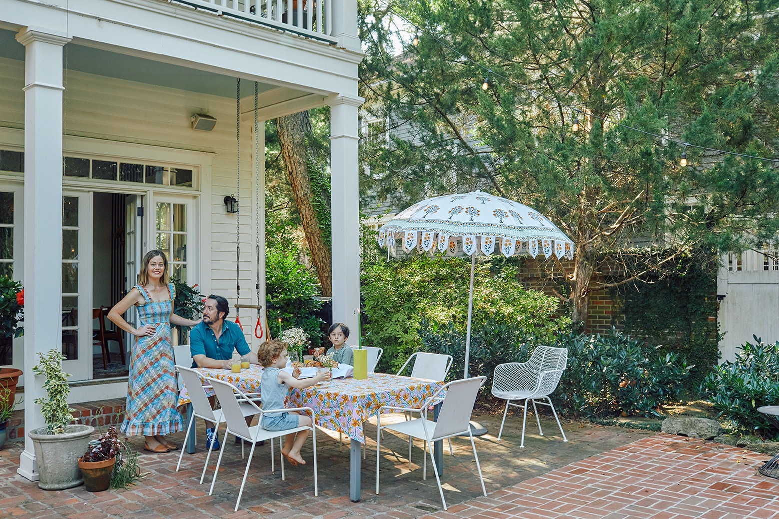 That experimental spirit can be found in the newly launched plaster furniture brand Brite Bodies, which she cofounded with fellow interior designer Krista Sharif this summer. And it’s a fitting ethos for a pro who corners her whole approach on the fusion of color, pattern, and personality. All of that (and more) are expressed in the 1910 American foursquare Kate shares with her husband, Jack, and sons Coley (6) and Max (3) in the Lake Claire neighborhood of Atlanta. There she melds design mainstays like Cole & Son wallpaper and Kelly Wearstler furniture with funky accents (think: oversize 3-D paper insects, anime posters, and robots) meant to charm her little dudes (and Jack, an animator whom she calls a “big kid at heart”).