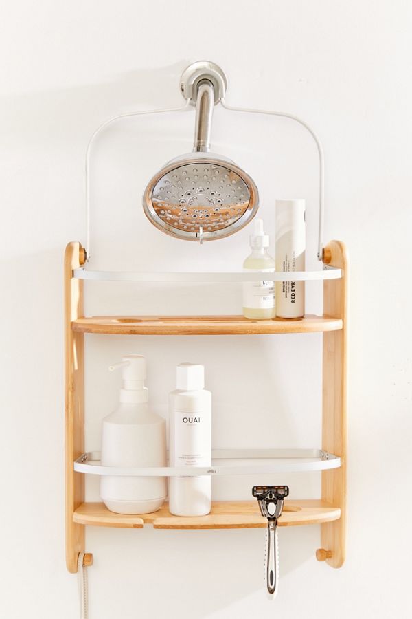 Lining the perimeter of your tub with shampoo bottles and various other accessories is not a good look—not to mention a nightmare to clean around. Designate a specific storage solution, such as this sleek bamboo caddy, to keep things tidy and in one place.