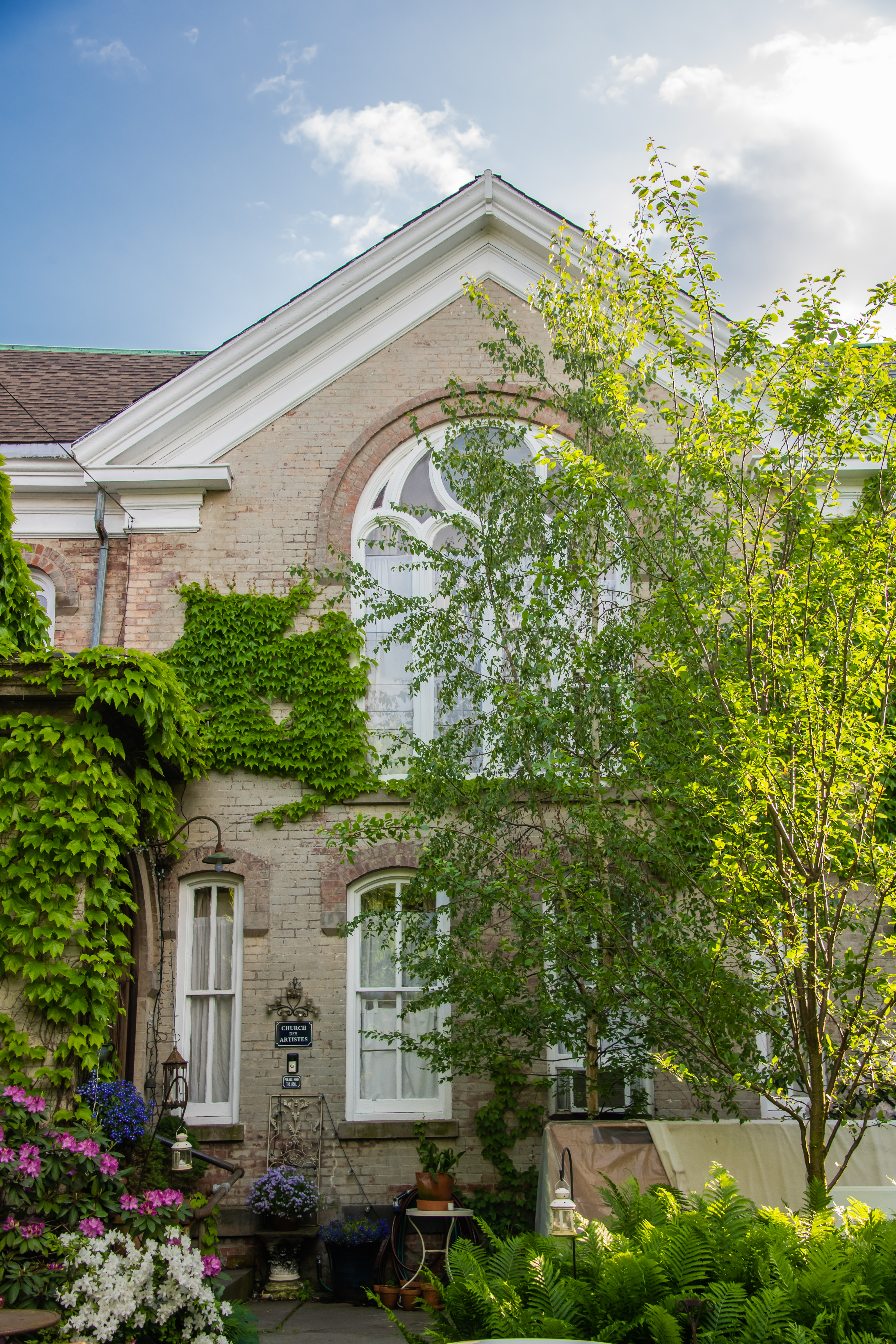 Over the past three decades, the pair have transformed that 4,000-square-foot church into an artist’s oasis and bed-and-breakfast, aptly named Church des Artistes—which translates to “church of the artists.”