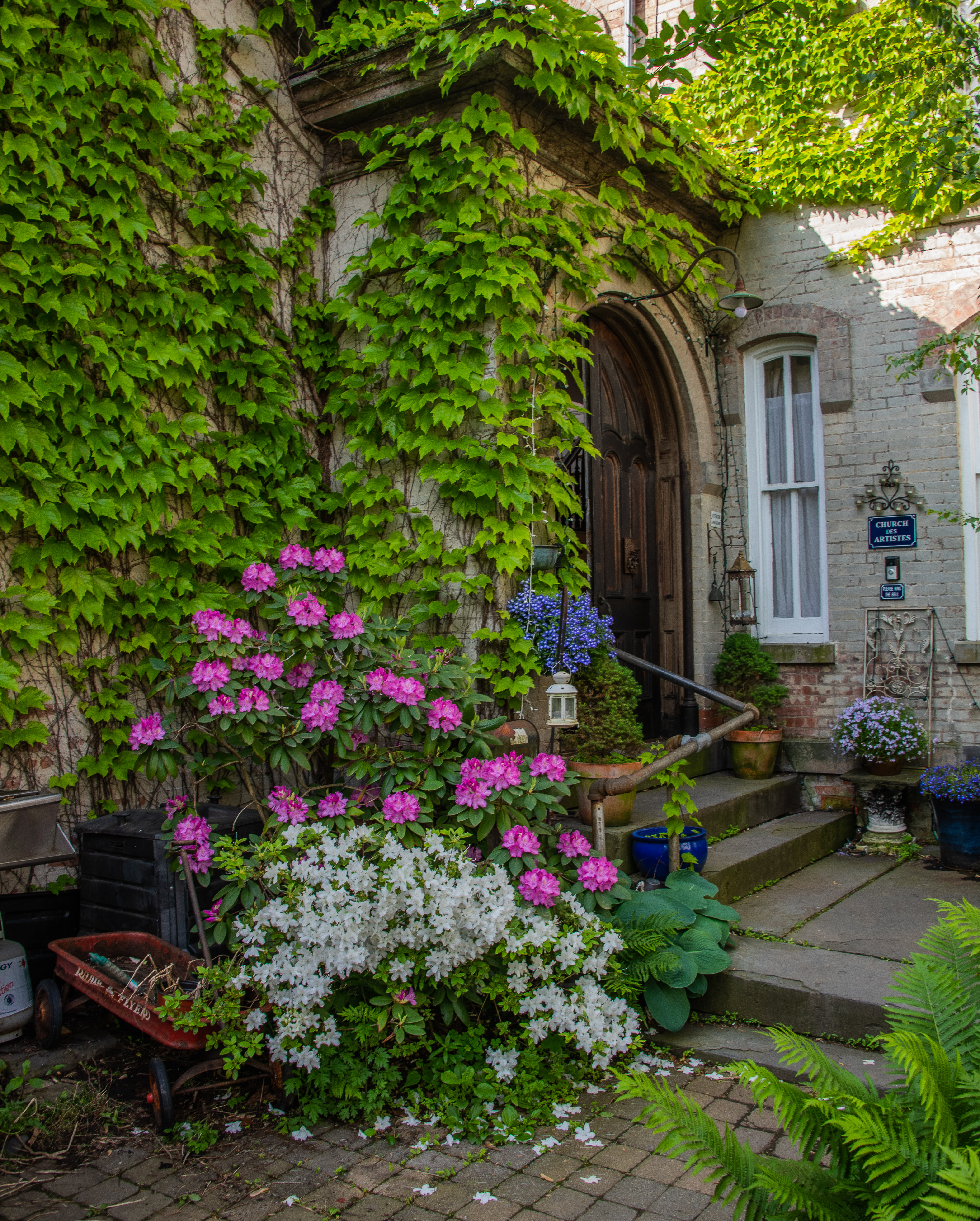 The original garden was a dried, grassy, weedy front lawn in front of the chapel, wedged between the back brick wall of the main church and the side brick wall of the parsonage. We immediately imagined the possibility of a secret garden.