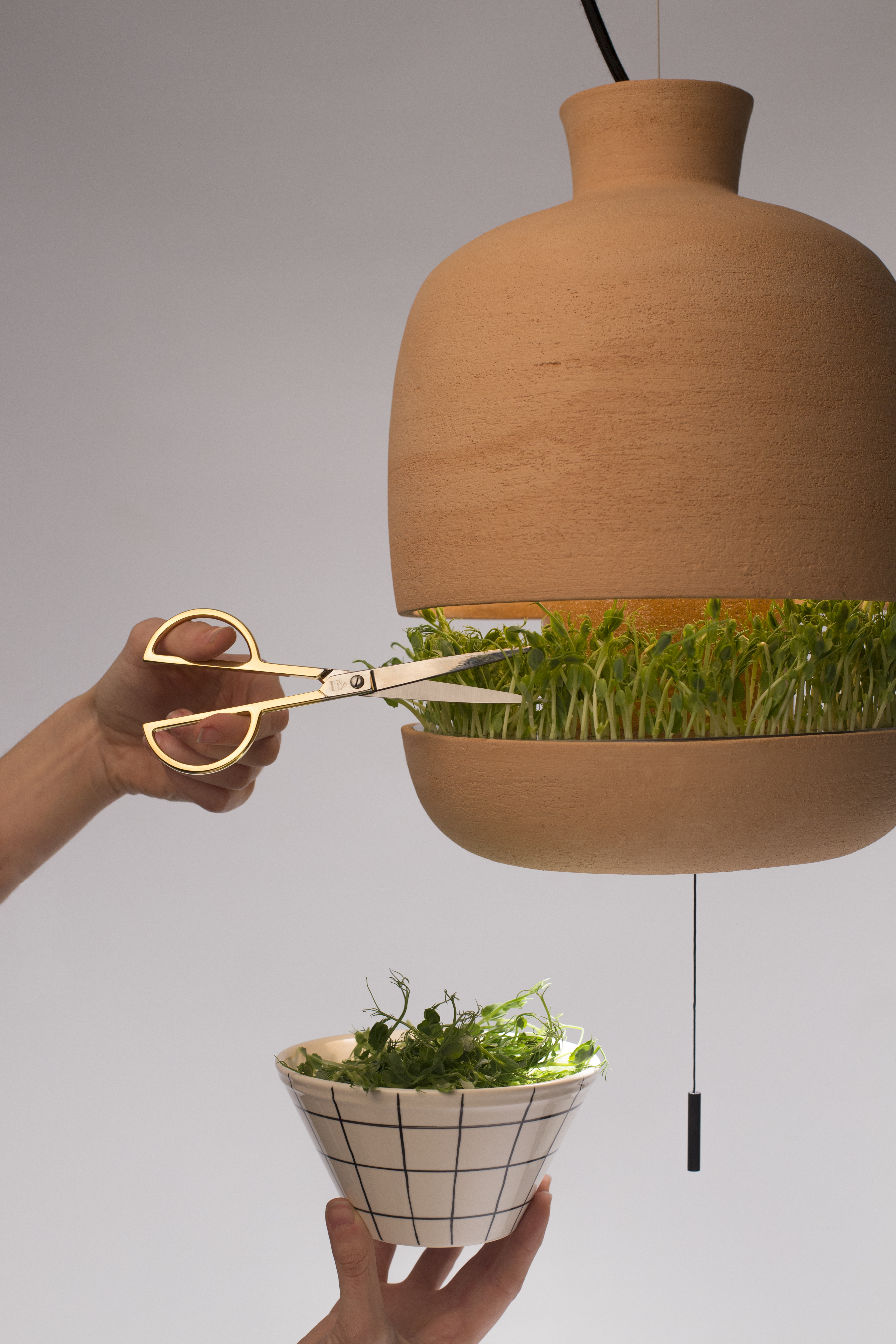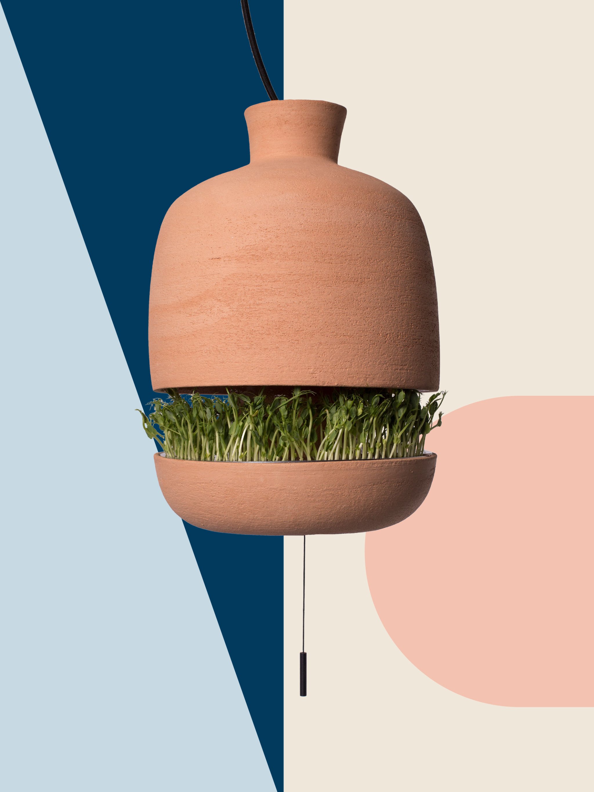 Vianna and fellow cofounder Ferran Gesa debuted a food-forward product for the home at this year’s Stockholm Furniture Fair. Brot—which means sprout in Catalan—is both a pendant lamp and a seed sprouter. Crafted from terra-cotta, the two-piece fixture is designed to cultivate a warm and cozy environment (as all good lights do) while also growing fresh, edible greens.