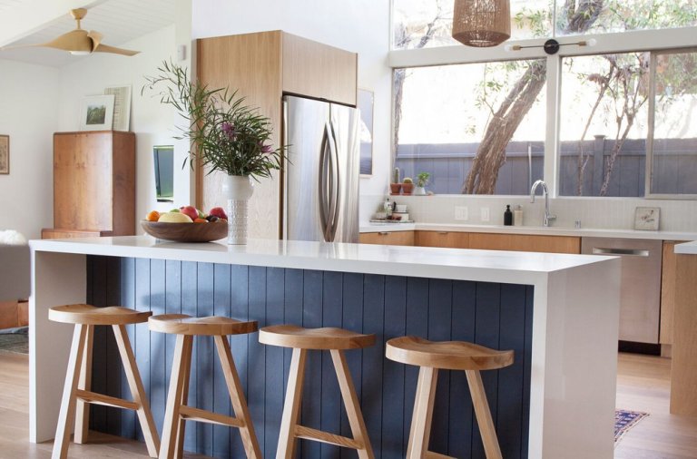 My goal was to give the space a cooler vibe, reflecting her interests. She’s a true California girl; she’s sporty and loves to surf. The room design was inspired by one of her favorite things: a surfboard I gave her for her birthday that has a black and white vintage textile design.