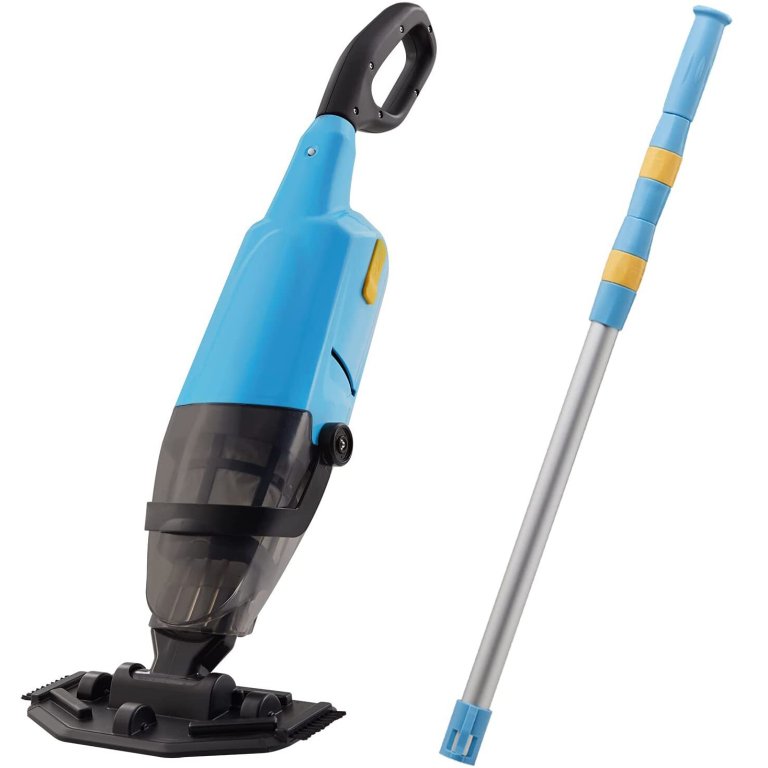 An interchangeable brush head, a battery charger, and an interchangeable aluminum telescopic pole are just a few of the features that make this handheld vacuum stand out. For starters, it only weighs eight pounds, so transporting it from your storage space to the pool should be a cinch. And there’s no need to break out the toolbox for assembly: Just connect the vacuum to the pole, insert the vacuum head into the cleaner cover, flip the rotary switch to power it up, and you’re all set for cleaning. If the vacuum hasn’t been submerged in water after 60 seconds, it has a built-in sensory switch that will automatically power it off to maintain the motor life.