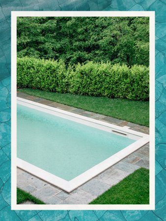 Although easier to install, the main aesthetic woe of going with an above ground pool is that it’s always exposed; you could argue in-ground pools are almost hidden and look more like a pond rather than an oversize water fountain, revealing only the liner you decided to go with. Our main reason for choosing a rectangular above ground pool is simple: It makes installing a deck around its perimeter far easier, especially if you’re determined to pick up a few boards to saw and install yourself. If you’re not sure where to start, Etsy creators offer a variety of plans available to purchase (how cool is this?), or you can even pick up interlocking composite planks. As for the pool itself, it’s a less obtrusive light gray wrapped around a tilelike vinyl liner that’s puncture resistant and doesn’t require any tools to set up—simply add the poles and water and you’re good to go.