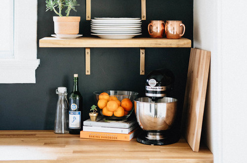 and painting the walls a striking black shade, bloggers We Are The Brauns created a clean, minimalist kitchen that somehow still feels bright and airy despite the dark walls.
