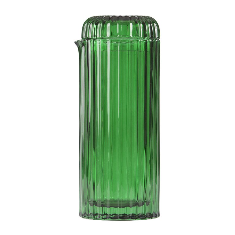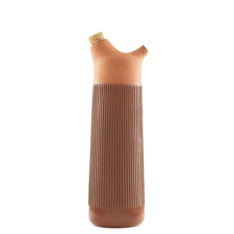 Glass isn’t the only option when it comes to carafes. Bring an earthier vibe home to complement a bohemian space with a porcelain piece from Pigeon Toe (good luck picking just one color) or a Spanish-inspired terra-cotta jug from Normann Copenhagen. Both double as sculptural accents when not in use. And for a whimsical glass option, DOIY’s vivid green cactus carafe is a more literal take on desert decor.