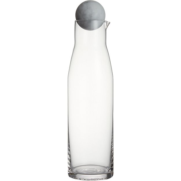 For the categorical minimalists, keep it simple with a sleek, clear carafe with subtle detailing. Ferm Living’s ripple-effect piece looks like a vintage bar cart staple, making your daily H20 consumption a little more luxe. Similarly, CB2’s marble-topped option is great for that opulent-on-a-budget look. No one would ever guess the carafe is under $20.